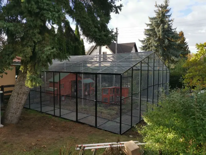 In den meisten Bundesländern sind Volieren bis 3 m Höhe genehmigungsfrei. Bitte informieren Sie sich trotzdem über die Bestimmungen in Ihrem Bundesland